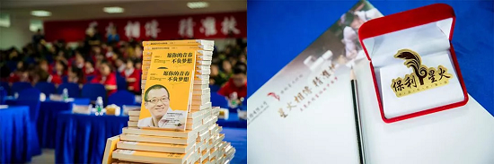 付俊、徐碚向?qū)W生代表贈(zèng)予書籍,卜玉龍向?qū)W生代表授予“保利星火班”旗幟。