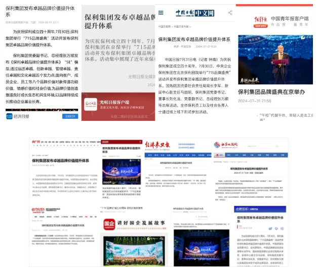 圍繞保利成立四十年,各類權威主流媒體和行業媒體密集報道,以多元視角呈現保利改革發展、品牌建設的諸多成效,形成全網聚焦的傳播合力。