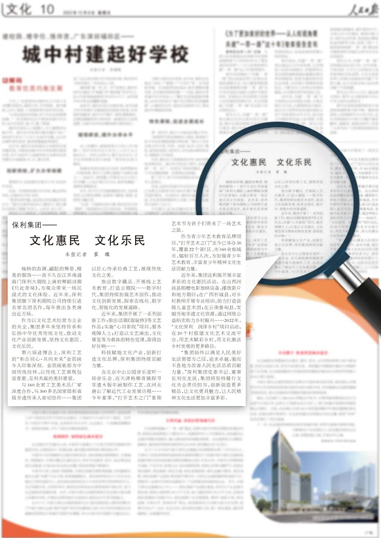 12月8日,《人民日報》刊發《文化惠民 文化樂民》一文,報道保利集團始終以傳承和發展傳統文化為己任,致力于講好中國工藝美術故事、提供優質公共文化服務的系列舉措成效。與大家共享——