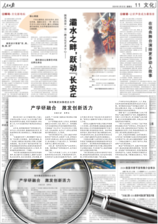 3月22日,《人民日報》刊發《保利集團加強校企合作 產學研融合激發創新活力》一文,報道保利集團堅持產學研深度合作,在行業人才隊伍培養、基礎前沿技術攻關、科技成果轉化等方面持續發力,不斷激發創新活力的系列舉措成效。與大家共享——
