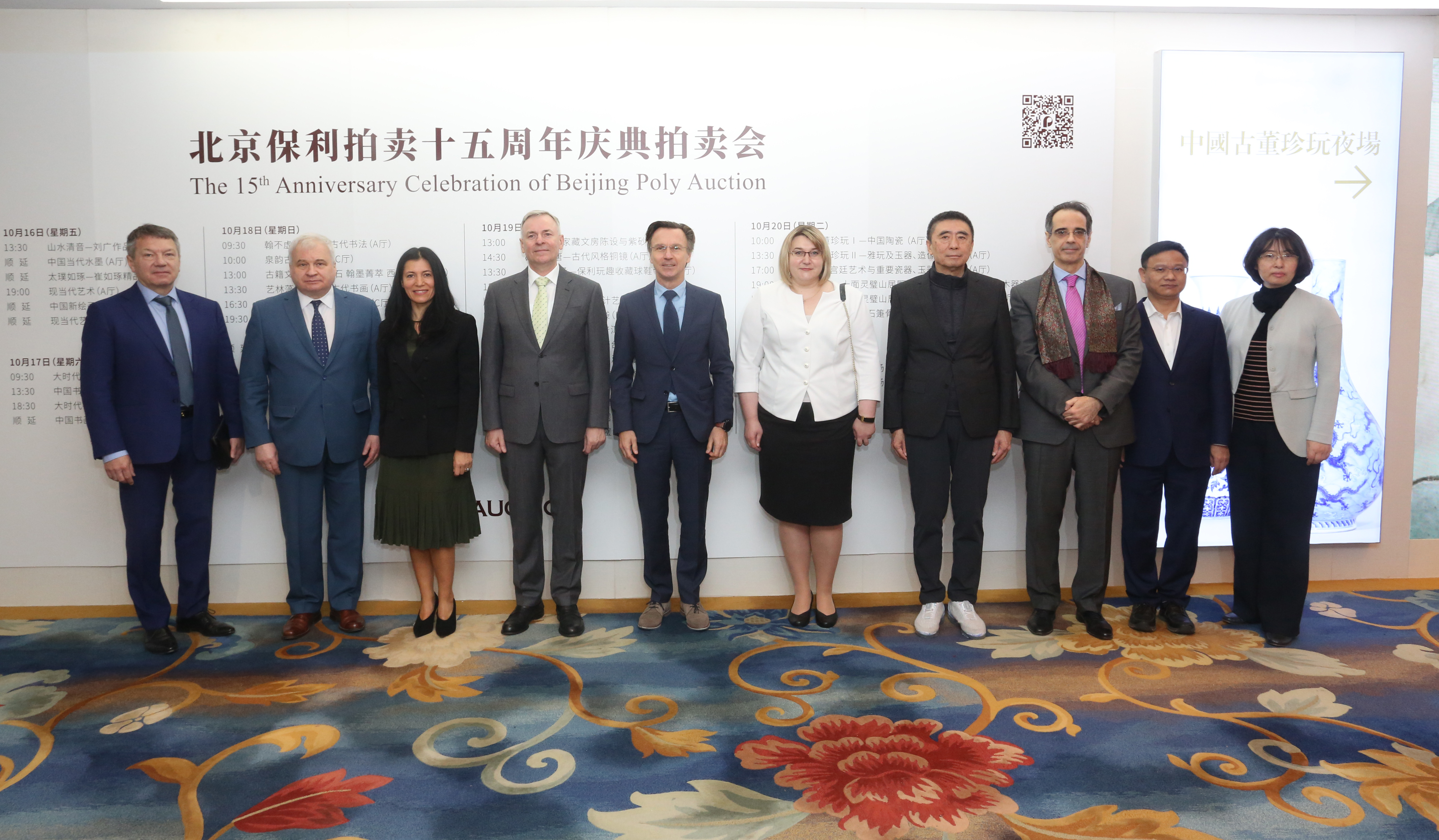 10月15日,來自俄羅斯、奧地利等7個國家的駐華使節代表,參觀了在北京國貿大酒店舉辦的北京保利拍賣2020秋季拍賣會預展。現場,近現代書畫、古代書畫、現當代藝術、古董珍玩等千余件拍品亮相。保利集團董事長徐念沙,集團董事會秘書、保利文化常務副總經理李衛強,北京保利拍賣公司總經理王蔚等參加了使節會。