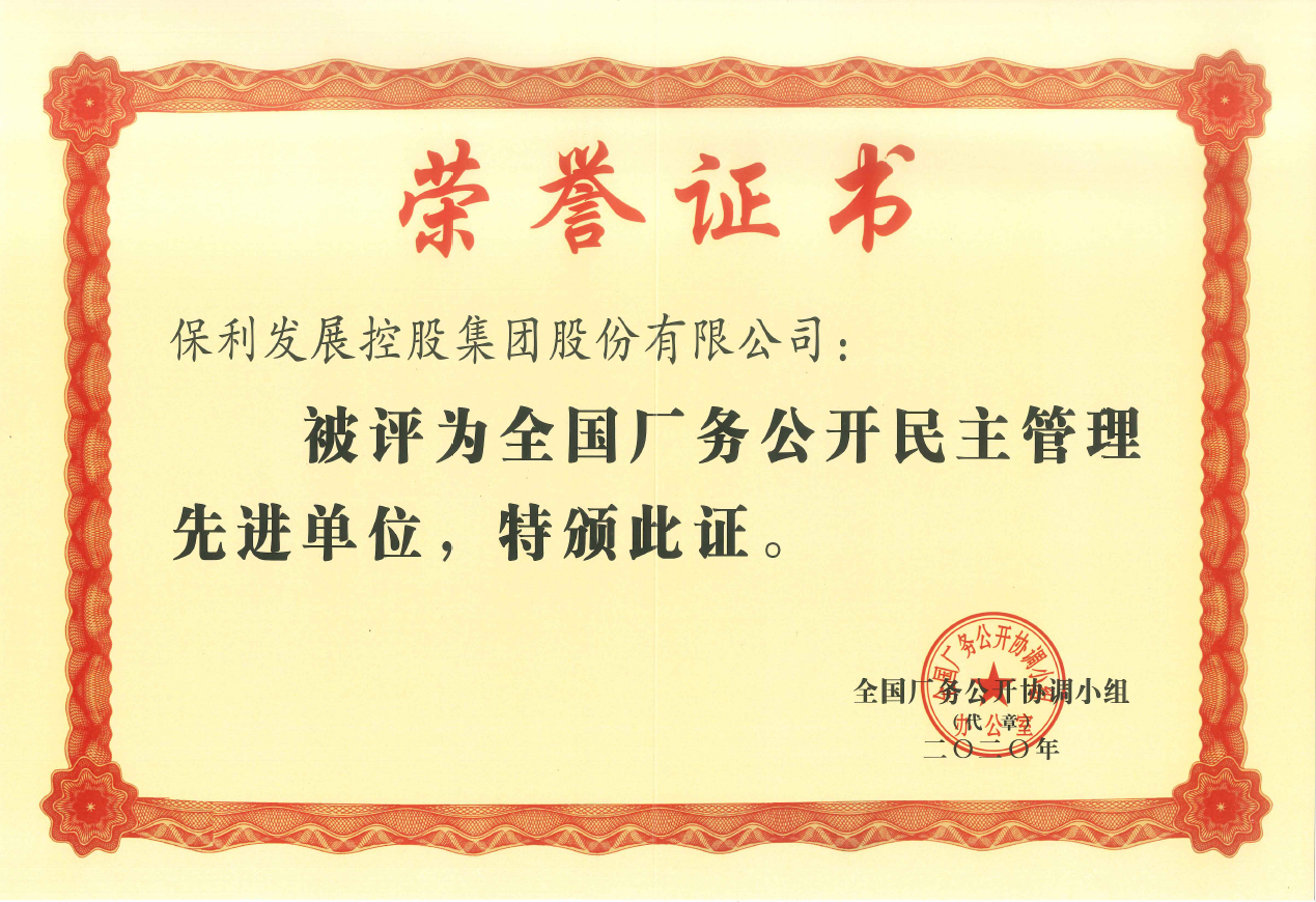 保利發(fā)展控股集團榮獲“全國廠務(wù)公開民主管理先進單位”稱號