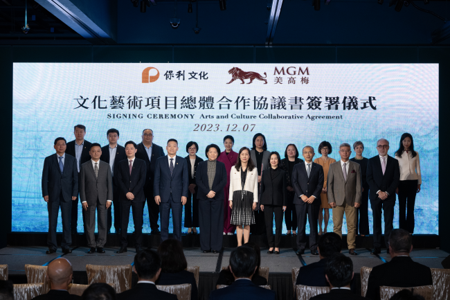 12月7日,保利文化與美高梅《文化藝術項目總體合作協議書》簽署儀式在澳門“美高梅展藝空間”舉行。澳門特別行政區政府社會文化司司長歐陽瑜,中央人民政府駐澳門特別行政區聯絡辦公室副主任嚴植嬋,保利集團黨委副書記、董事張浩,保利集團總經理助理,保利文化集團黨委書記、董事長王波,美高梅中國控股有限公司董事長及執行董事何超瓊,美高梅法律事務執行副總裁及法律總顧問馬家豪作為見證嘉賓參加儀式。