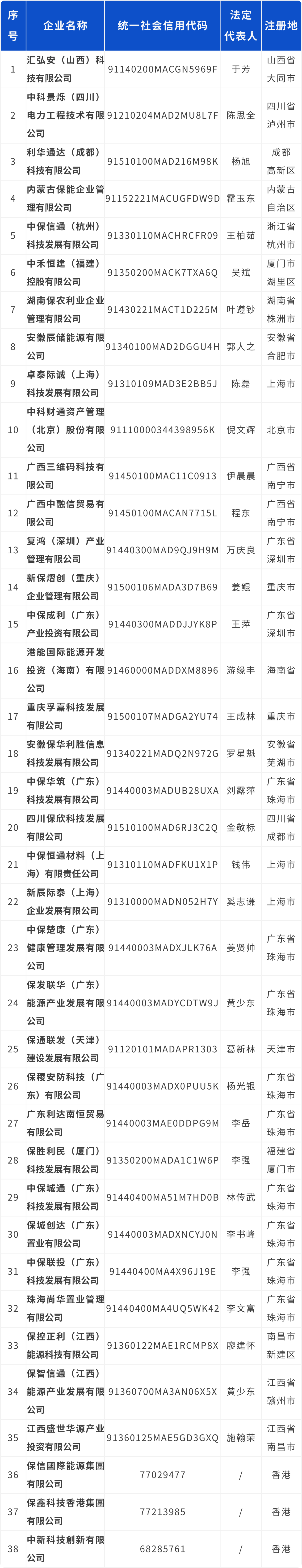 經保利集團核實,下表所列公司及其下設各級子公司均與保利集團及所屬公司無任何隸屬與股權關系,也不存在任何投資、合作、業務等關系,其一切行為均與保利集團無關。請廣大社會公眾提高警惕,注意防范風險,如發現其違法犯罪行為,請盡快到公安機關報案。