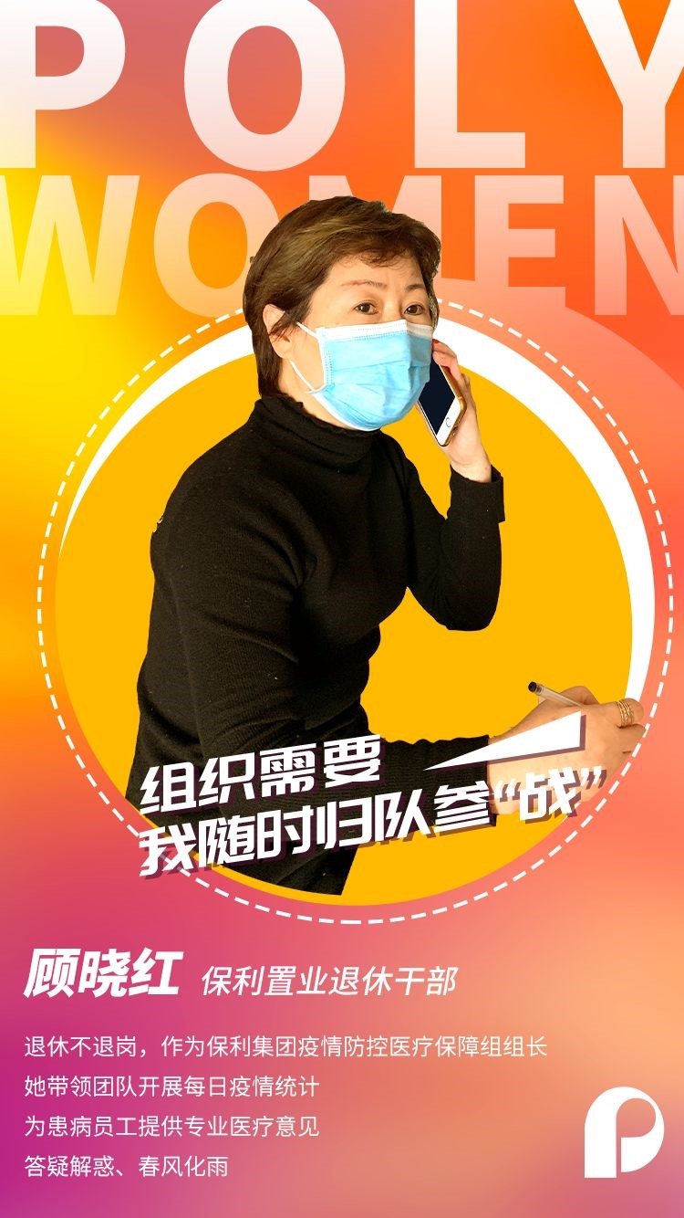 Gu Xiaohong, a retired cadre of Poly Real Estate Group Co., Ltd., returned to her post. As leader of Poly Group’s medical assistant team for preventing and controlling the epidemic, she led her team to calculate outbreak statistics and offered professional medical advice to affected employees.